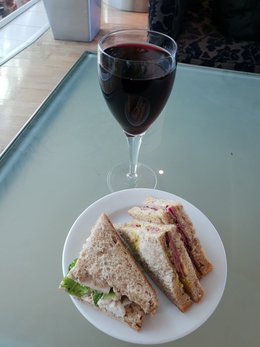 En riktigt bra lounge med bra med mat och en fantastik fläsk/nudelsoppa och trevliga franska viner. Kommunistiska Vietnam har överraskat under detta första men inte sista...
