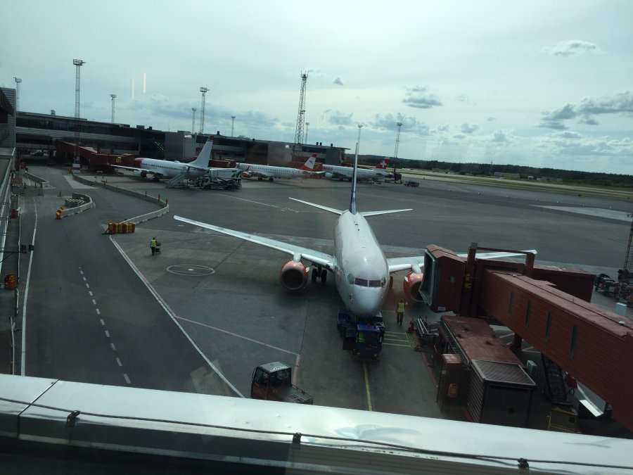 Hälsning från Sas business lounge T5, Arlanda. Mellanmycket folk. Fick dock stå i 43 min i kö, för att lämna in min väska. Det var i business kön. Har folk redan börjat ha semester? Själv väntar jag på LH 807, som ska ta mig ner till Frankfurt.