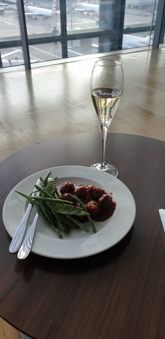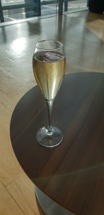 Hälsningar från FCL i Frankfurt A Gates. Kanonbra service och fin utsikt mot plattan. Dessutom får vi en flaska efterrättsvin att ta med oss. Vilken grej kanske borde jag posta det här i tråden ”Lufthansa - det här gjorde ni bra”. Nu väntar vi in SK676 mot CPH.