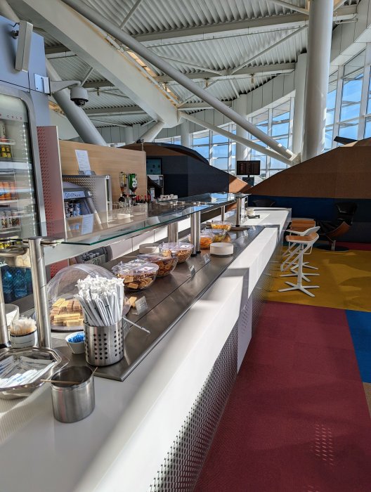 Salon Businesses Lounge (satellite) på Bucharest flygplats OTP. Inget jag skulle rekommendera annat än att dyka upp till för frukost. Den huvudsakliga Business Loungen för *A har tydligen inte öppnat sedan pandemin. Dock väldigt gott om plats antagligen de bästa laddar-möjligheter jag sett i någon lounge. Har räknat till ca 20 laddstationer inkl multikablage + 3 ordinarie uttag vid varje bord.