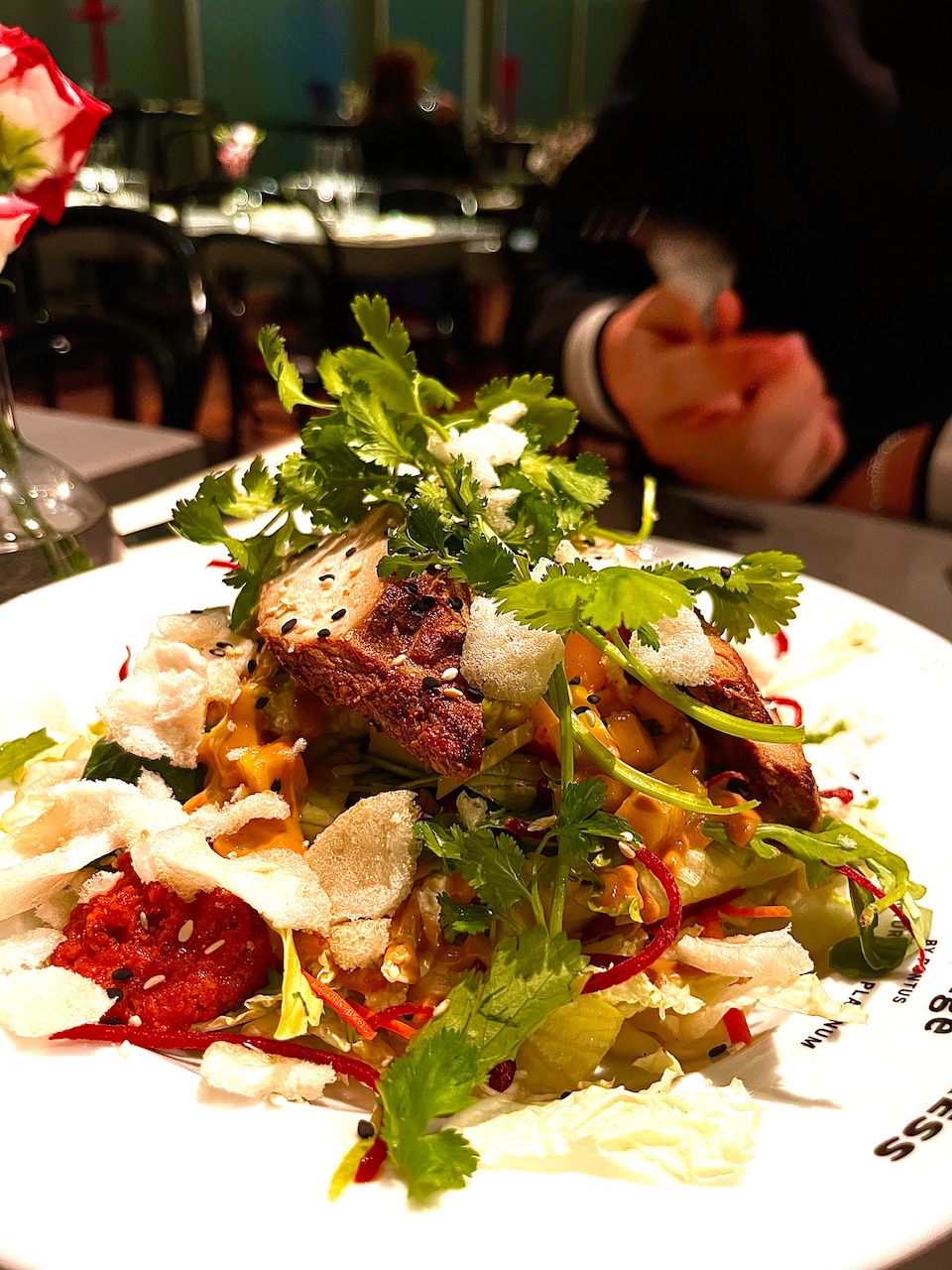 Jag och GOTBound Jr. delade på en asiatisk sallad till förrätt, smörrebröd [glutenfria!] till pappan och köttbullar åt sonen.