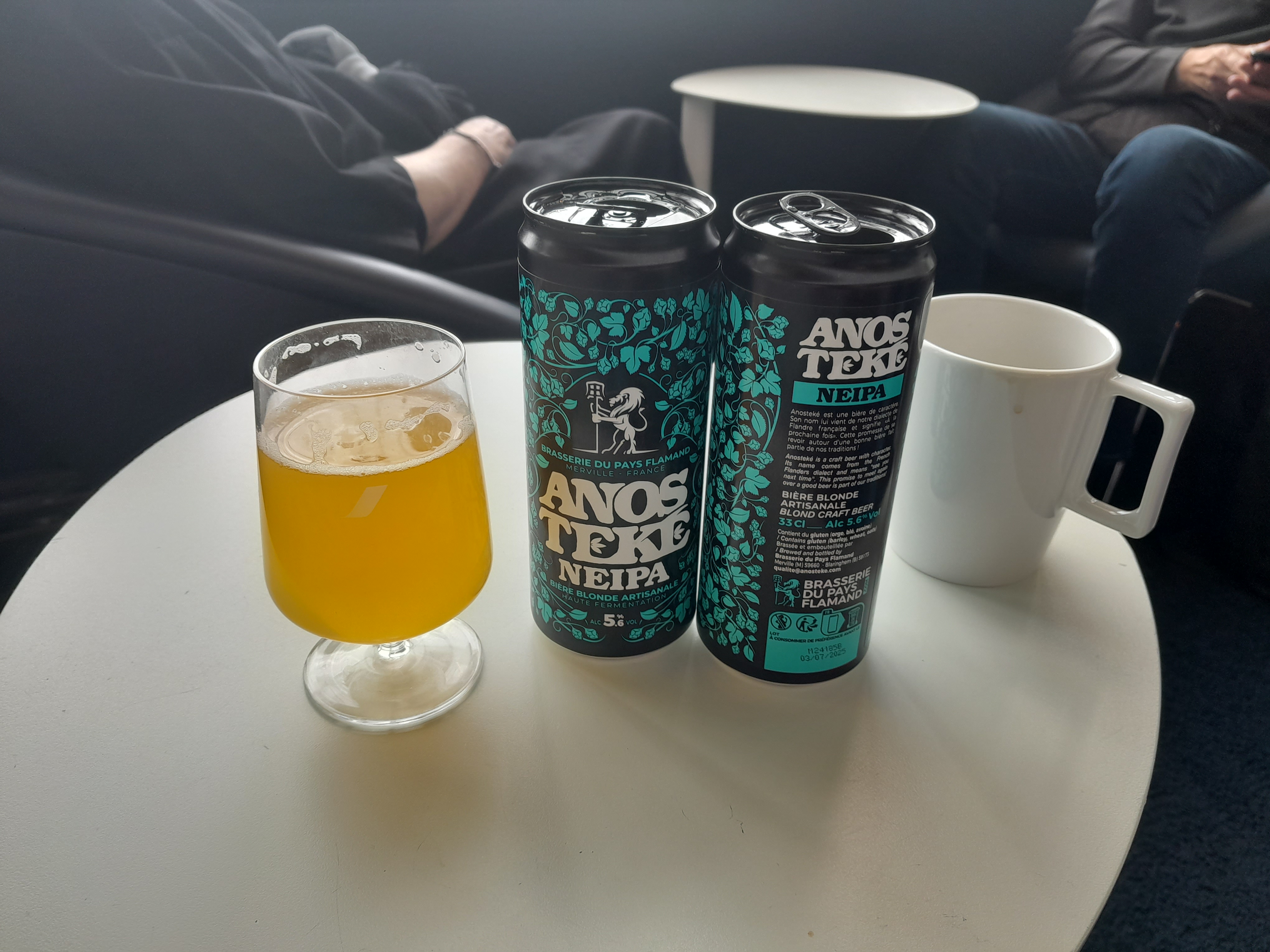 Paris Salon K i Terminal 2E. Endelig kan man få en øl der let overgår den evendelige Heineken pjask...Idag er der Thienot champagne som man nødes. Udmærket drink, de spotter os og byder, man behøver ikke flytte sig. Bjerget kommer til Muhammed....