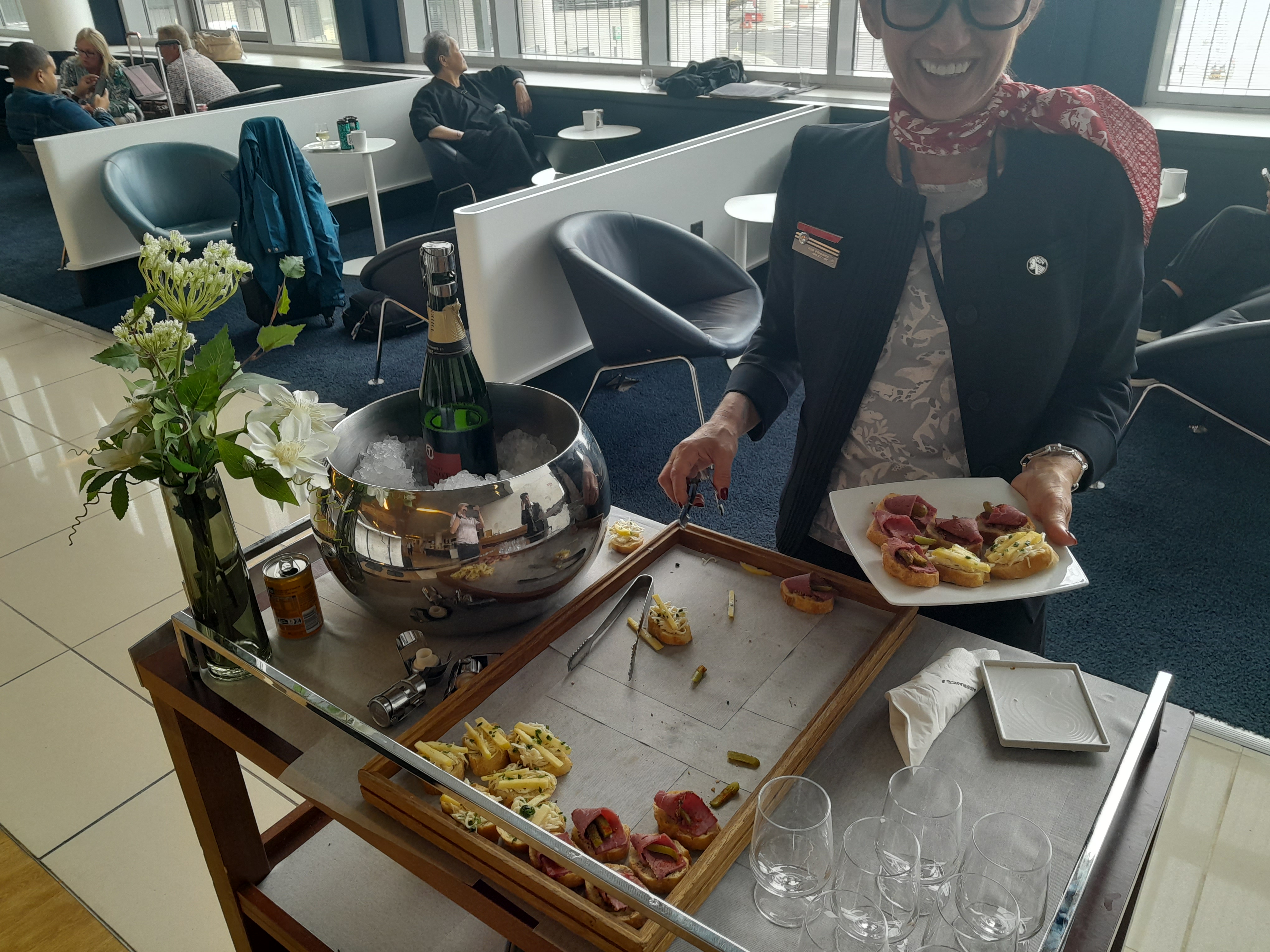 KLM lounge 25 I Amsterdam åbnede kl.5. Dejlig lounge, god morgenmad