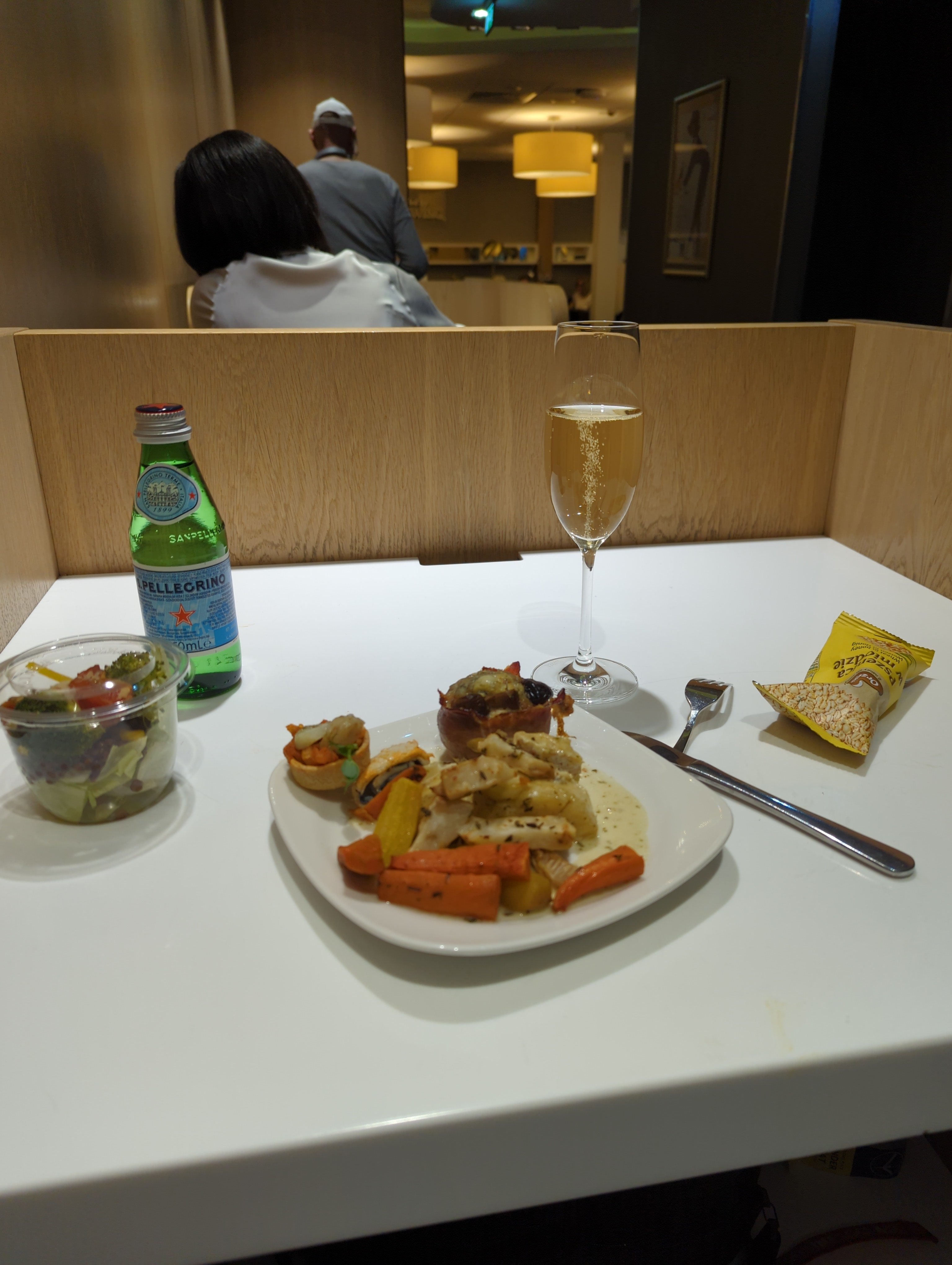 Hej hej från SAS guld OSL. Ovanligt fullt här idag, men det är väl följdverkningarna av morgonens flygkäbbel över Norge. Välfylld salladsbuffe, och fortfarande ingen cola på tapp.