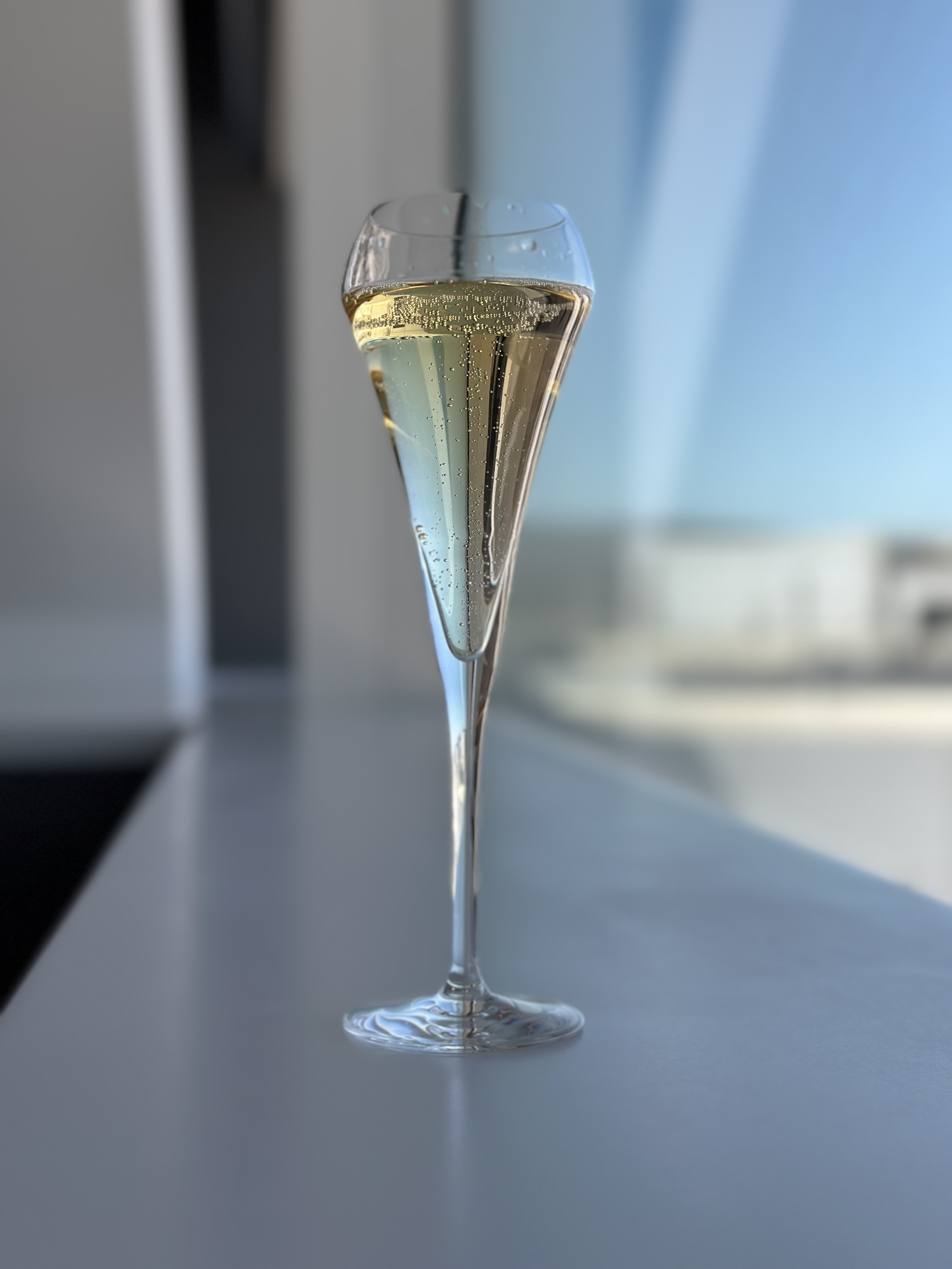 Var du inte i Tahiti nyss, eller är det glitch i Matrixen?Hälsningar från United Polaris Lounge på San Francisco. Njuter av ett glas champagne och den fantastiska utsikten över flygplanen.