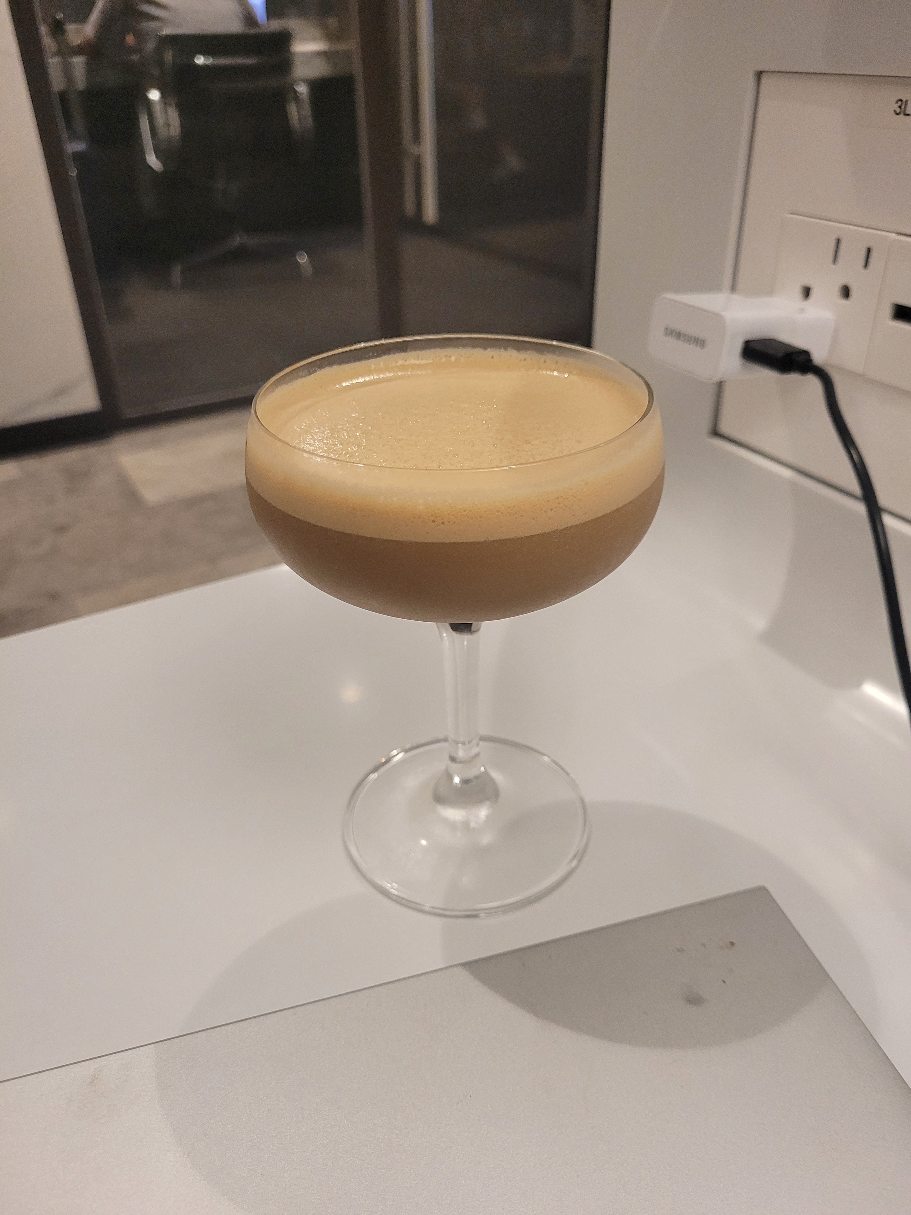 Den där chokladkakan är magisk.Hej och hå från Polarisloungen på Dulles.