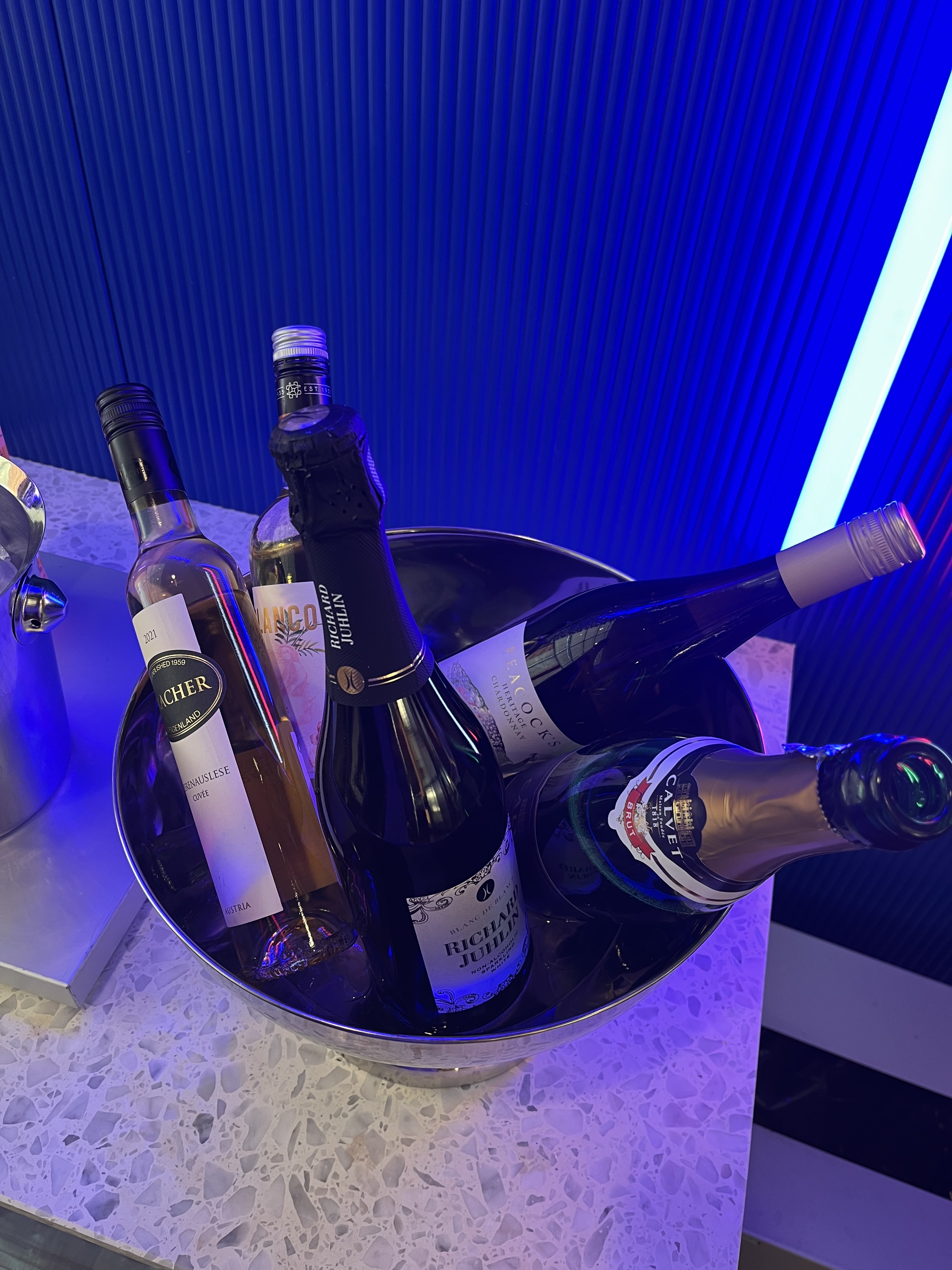 Nytt för mig som inte flugit på ett tag är att SAS numera har ett lite sötare (dessert) vin från Österrike ”Auslese”-druva, 375ml. Finns både på ARN och CPH. Ovanligt bra kvalitet och gott till osten Flaskan till vänster i bild.