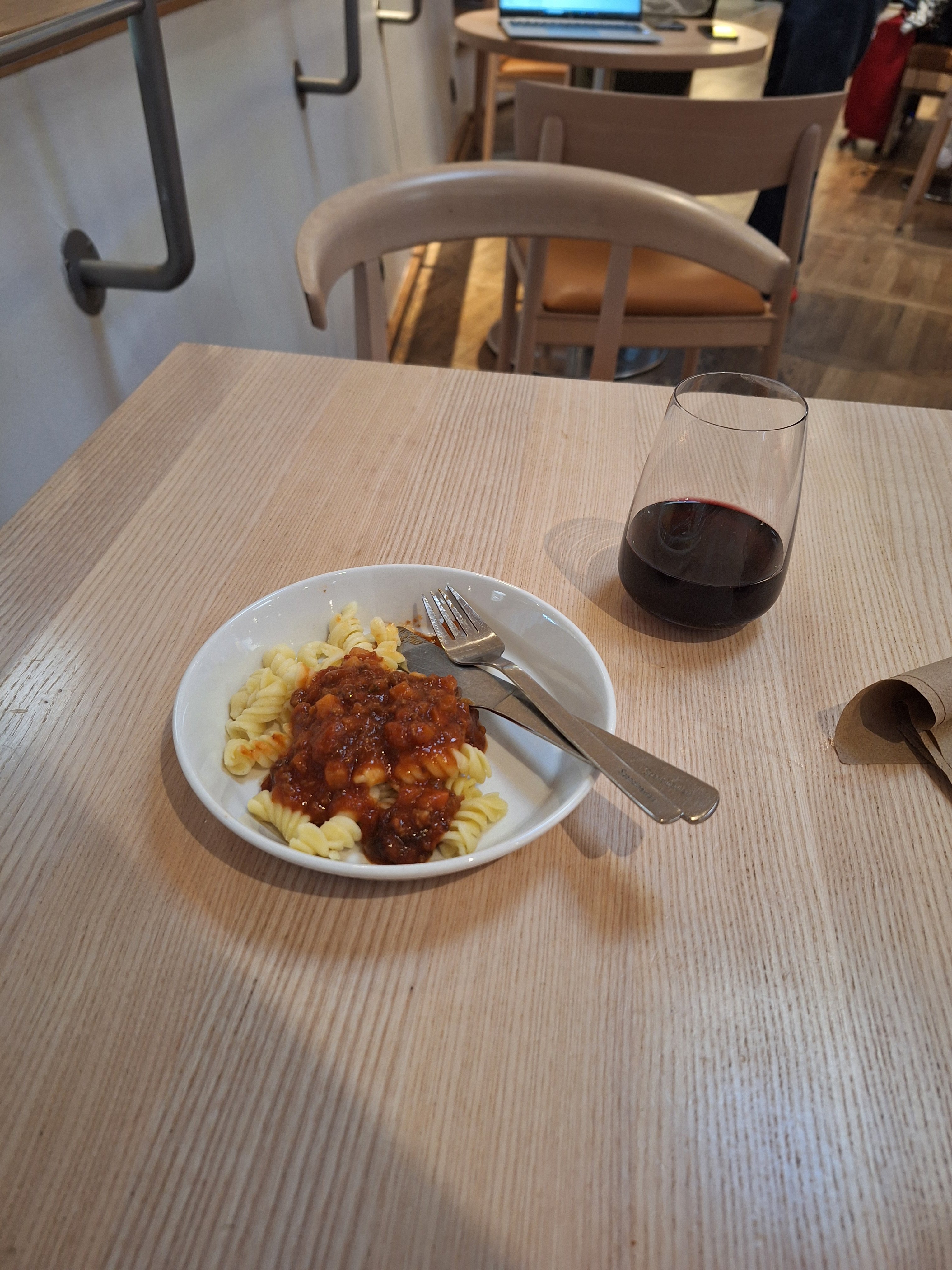 Dags att inför den Japanska modellen? Första gången jag är i Japan och fick denna på frukosten. Riktigt bra idé tycker jag.Skolbespisning nr 2. SAS gyllene lounge på CPH. Makaroner och köttfärssås, men ingen riven ost i sikte. Ödsligt, så personal hinner städa. Det går lite för fort. På bilden portion 2, då första städades bort när jag hämtade dricka.