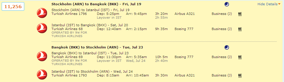 Tänkte gå efter Aegean gold och undrade hur mycket points jag får sträckan ARN-IST-BKK T/R i Business Restricted som är priset runt 13k?