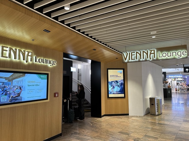 Nu parkerad i Vienna Lounge, väldigt stor och luftig lounge med mycket fönster och utsikt mot plattan. Avsevärt bättre än Austrians egna lounger här.