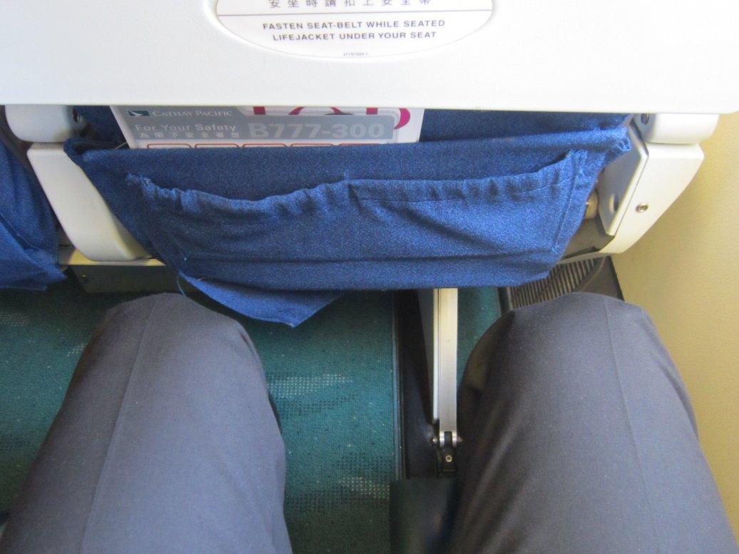 På denna flight fick jag testa Cathay’s ”skalstol” i economy, vilken är så konstruerad att både sittdynan och ryggstödet glider så att säga framåt. Dvs du fäller inte ner stolen i knät på bakomvarande passagerare. Stolen var helt ok och funkade bra på en flight på knappa tre timmar. Det man kan fundera på är hur stolen funkar att sova i. Man får en viss lutning på ryggstödet, men vad jag kommer ihåg så justerades inte nackstödet så mycket. I en vanligt ekonomiklass stol lutar ju det med, så att säga. Även här fanns det en IFE-anläggning, men min vana trogen utforskades den aldrig närmare.