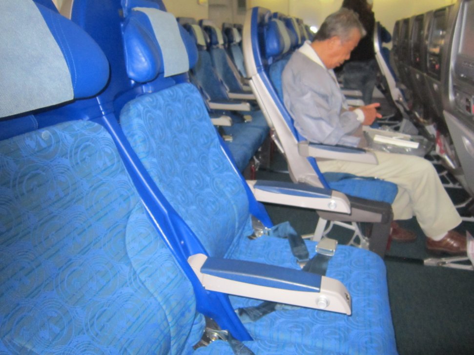 Vid ombordstigningen plingade det tillmaskinen, men nej, jag var inte uppgraderad. Däremot hade Cathay sin vana trogen bytt kärra till en B 747, så jag hamnade på en annan rad, men på fönsterplats. När jag väl var på planet förbannade jag mig själv att jag inte hade varit mera observant. Hade jag varit det hade jag kunnat testa deras nya economy extra säte. Väl ombord insåg jag fadäsen, två rader längre fram och jag hade hamnat rätt. Jag gjorde några matta försökt med kabinpersonalen att byta plats. Men kände att det inte var läge att argumentera med personalen att originalflyget bara hade två klasser och nu kunde man som ekonomiklasspassagerare sitta i eco+, samtidigt som jag skulle viftat med min Emeraldstaus. Lite sent insåg jag att detta skulle jag ha gjort i gaten, där kunde det ha funkat. Nåväl, jag satt ju inte så illa där jag satt, jag var mest sur över att ha missat chansen att nästan ha testat Cathay’s samtliga stolar under mina 10 flighter med dem.