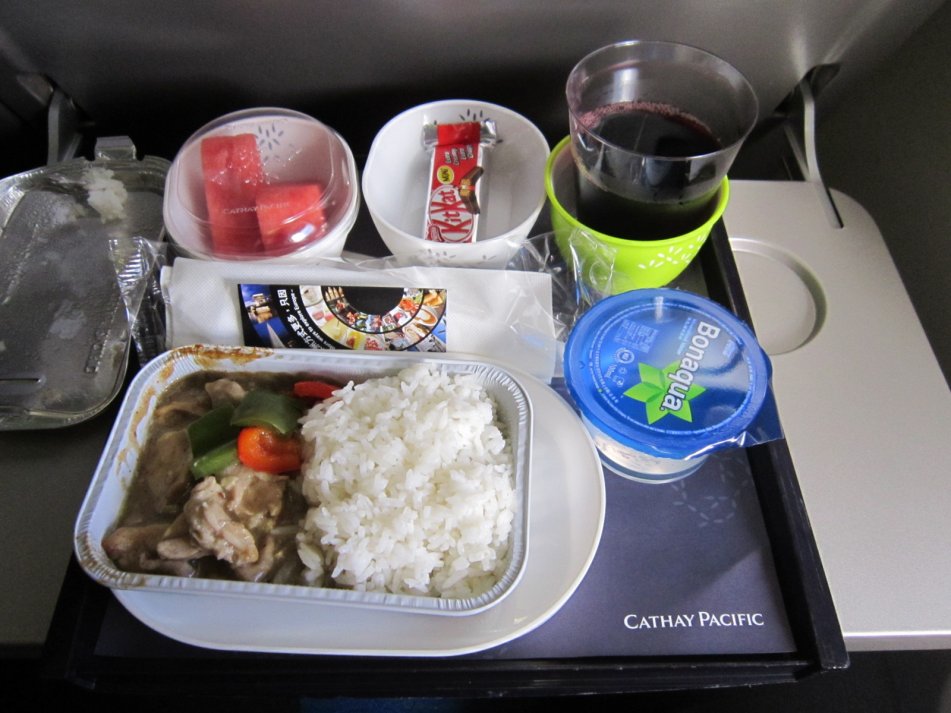 Tja, vad ska jag säga utan att vara alltför biased med avseende på mina föregående flighter i F och C. Cathay levererar igen jämfört med många intraeuropeska flygningar av samma längd. Vänlig och polerad service, lite enklare varm förtäring ingår, det inte alltför märkvärdiga vinet levereas snabbt när man ber om det och hade jag velat ha en GT hade dom säker fixat det också. Stolen erbjöd ett bra benutrymme för mig och det fanns även ett enklare IFE-system som jag aldrig utforskade närmare. Jag kan bara jämföra med min flight med AirAisa mellan Bangkok och Ho Chi Minh City som var ungefär lika lång, så klår ju Cathay dem på varje punkt och priset skiljer inte så dramatiskt mycket.