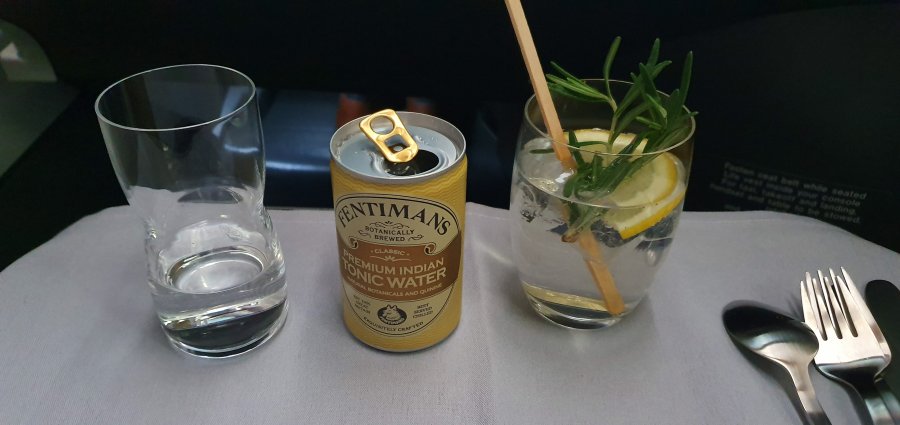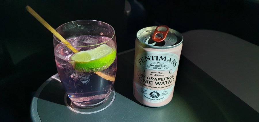 Liten mellanmåltids-fika. Pink Gin från menyn.