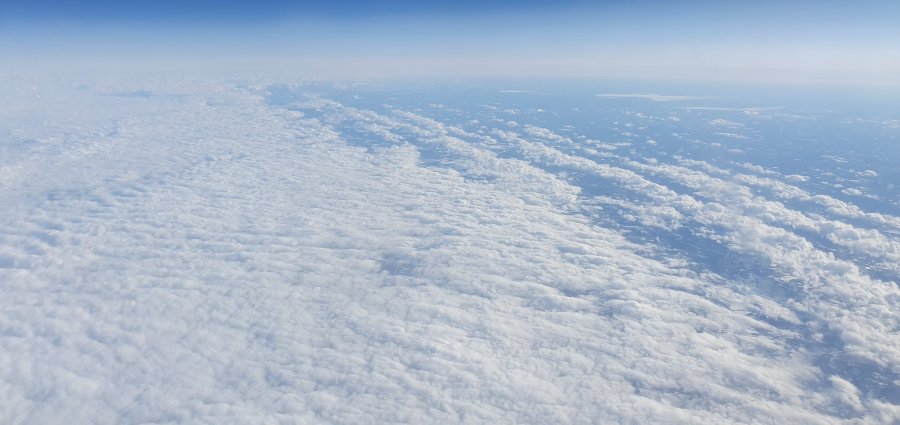 Ca 60 min innan landning började man sjunka från 33000 fot och det var bara moln och snö i sikte.