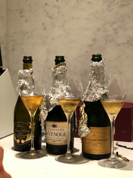 Den klara vinnaren var den äldsta Krug Grande Cuvéen, vi är lite osäkra på bas men troligen runt 88-90.