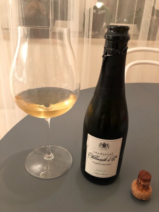 Gårdagens champagne, Vilmart Grande Reserve halvflaska. Mycket behaglig och kittlande doft, tyvärr så doftade den bättre än den smakade. Jag hade höga förväntningar på denna då många ger Vilmart goda omdömen. Kanske får jag ge den en ny chans inom kort.