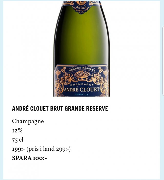 Roligt att jag lyckats fynda den på Birka-båten.Andre Clouet Grande Reserve 299:- är sedan länge en av favoriterna