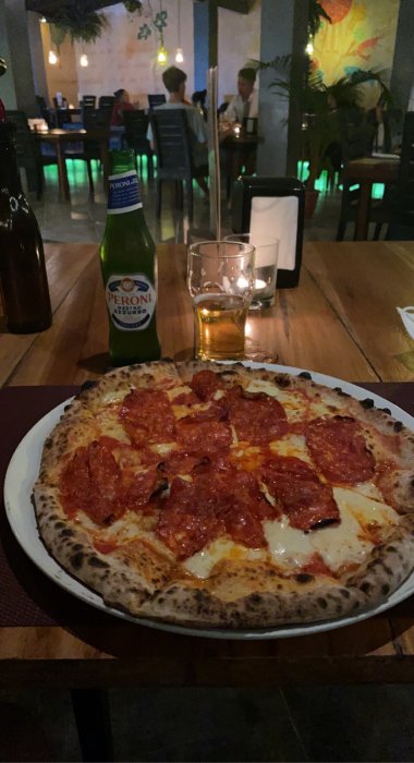 Ger mig ut för att äta något och snubblar in på en restaurang där jag ser några gäster lämna med pizza-kartonger. Blev sugen så jag går uppför trapporna till Amici Santa Teresa som visar sig vara en riktigt bra restaurang. Äter en av de godaste pizzorna någonsin och en kille ur personalen kommer fram och vi börjar prata. Efter att jag berömt pizzan och vi avhandlat lite annat på engelska så landar vi efter ett tag i att vi båda är svenska (Hej Boström). Det visar sig att det är en av ägarna och det kommer sluta i att jag i stort sett går hit varje kväll efter middag någon annanstans eller att jag äter här. Grymt trevlig restaurang och fantastisk personal. De har investerat stort i en ugn från Italien samt två killar som är influgna som pizzaiolos. Det resulterar i mycket bra pizza och stället är väldigt populärt. Galet trevlig personal och det gör mycket.