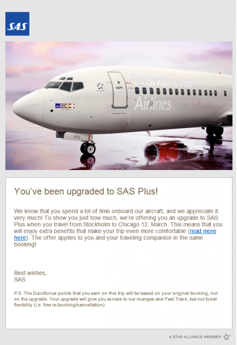 Grattis, vad kostade Cash uppgraderingen?CU från SAS Go till Plus på gårdagens ARN-ORD SK945. Uppgraderade mig med cash till C