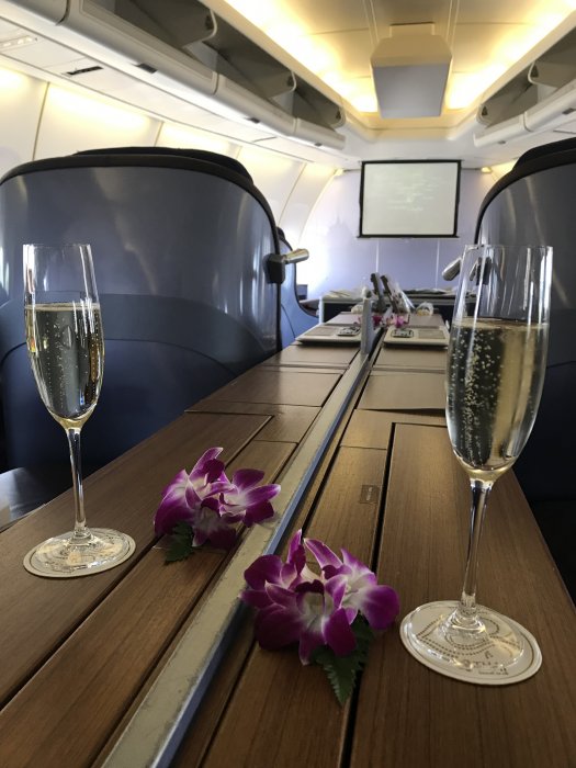 Kul, de öppnade inte upp den igår när jag flög ner.Business kan vara riktigt bra. Bokat en EuroBonus 2-4-1 Thai mellan Bangkok och Denpasar. Vi blev vid incheckningen framflyttade till nosen och den tidigare firstkabinen i 747:an