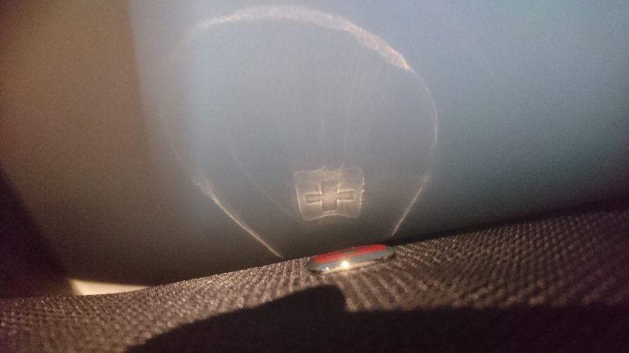 Ja, vad ska jag säga? Kunde inte låta bli att fascineras av denna reflekterande bild av märket på min handbagage väska. Inget märkvärdigt egentligen men jag kom på mig själv med att sitta och glo på den ur alla möjliga vinklar. Då blev den värd att fotas.