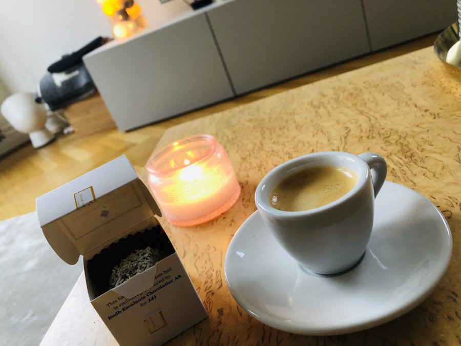 Förmodar att den är skattepliktig, när den tas hem.Sjukhuset jag jobbar på fick i måndags chokladbollar från SAS. Jag tog med mig min hem för att avnjuta idag. Så nära uppe i luften det går är just nu.