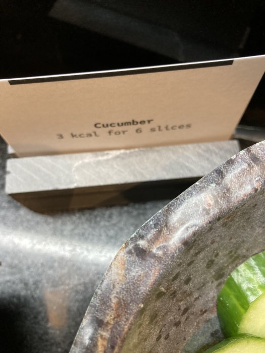 Lördagens frukost men minsta möjliga intag sex gurkskivor och vatten ger 3 kalorier