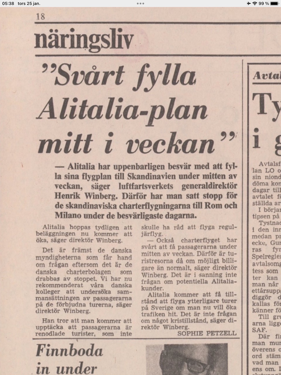 Det handlar om tiden före flygets avreglering. En tid med mycket strikta bestämmelser om vem som fick flyga vart.SvD för 50 år sedan, måste erkänna att jag inte fattar riktigt vad som menas, en sak är säker myndigheterna bestämde på den tiden