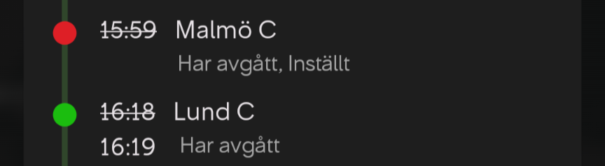 Trafikinformation är svårt ibland.. Men Trafikverkets trafikinfo på vad som då är SJ X2 544 är tämligen tydlig med att tåget varit inställt köpenhamn-malmö men sedan avgått Malmö C som planerat. Det här är tyvärr en känd bugg i systemen som ger dessa effekter. Om någon nånsin kommer åtgärda dem? vem vet.. Och alla med en bokad biljett borde ha fått information om att åka Öresundståg istället. Så ja , det ser konstigt ut, men om någon faktiskt blev från åkt, jag tvivlarSchrödingers snabbtåg både avgår och är inställt!