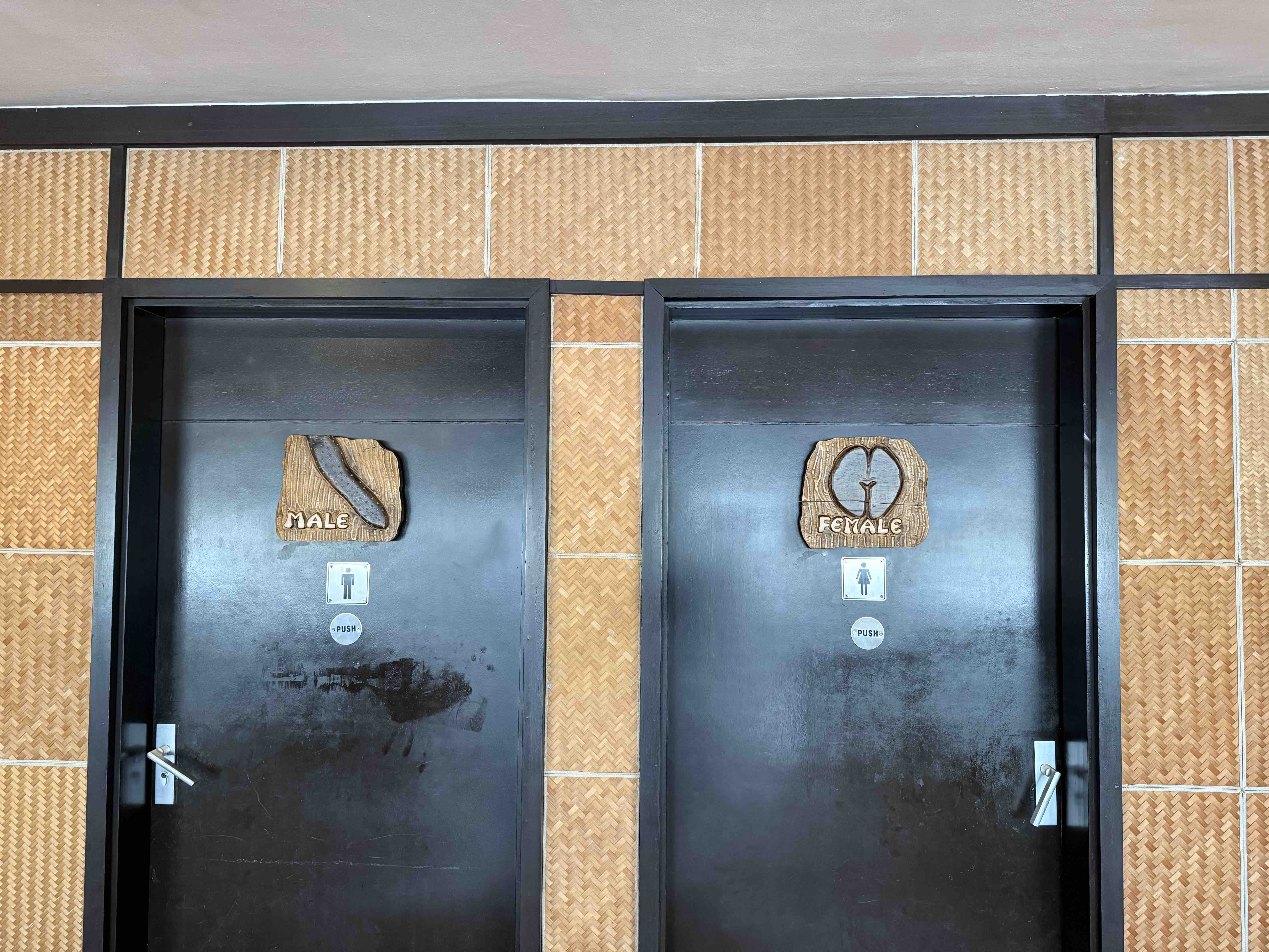 Loungen på Mahe, Seychellerna. Female är kokosnöten gissar jag, men vad är Male?