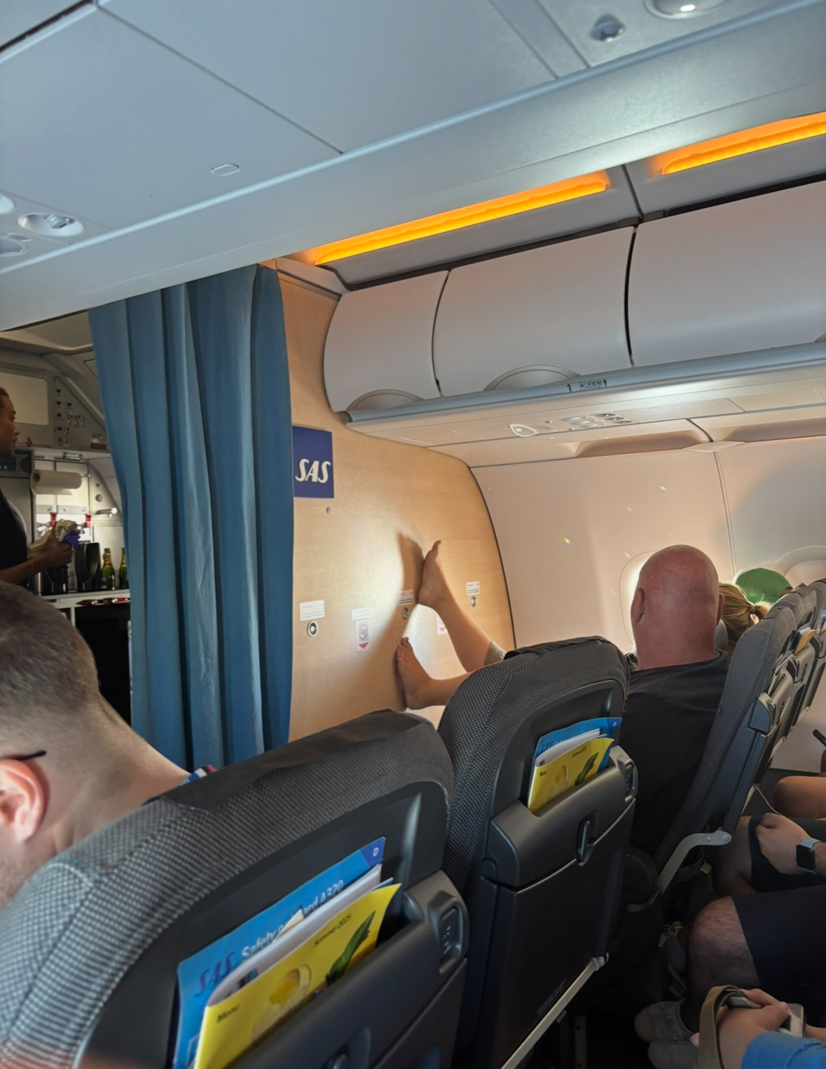 Jag skulle säga strumpor är minst illa, och jag har själv blivit skyldig till det på en 12-timmars flygning med AF i Premium Eco, för jag gled konstant ner i stolen när jag försökte sova. Obs, det var ganska kortvarigt då jag insåg att det inte heller var bekvämt, och jag hade rena strumpor på som jag tog på mig efter en dusch i loungen innan avfärd.Har man skorna på väggen hemma?