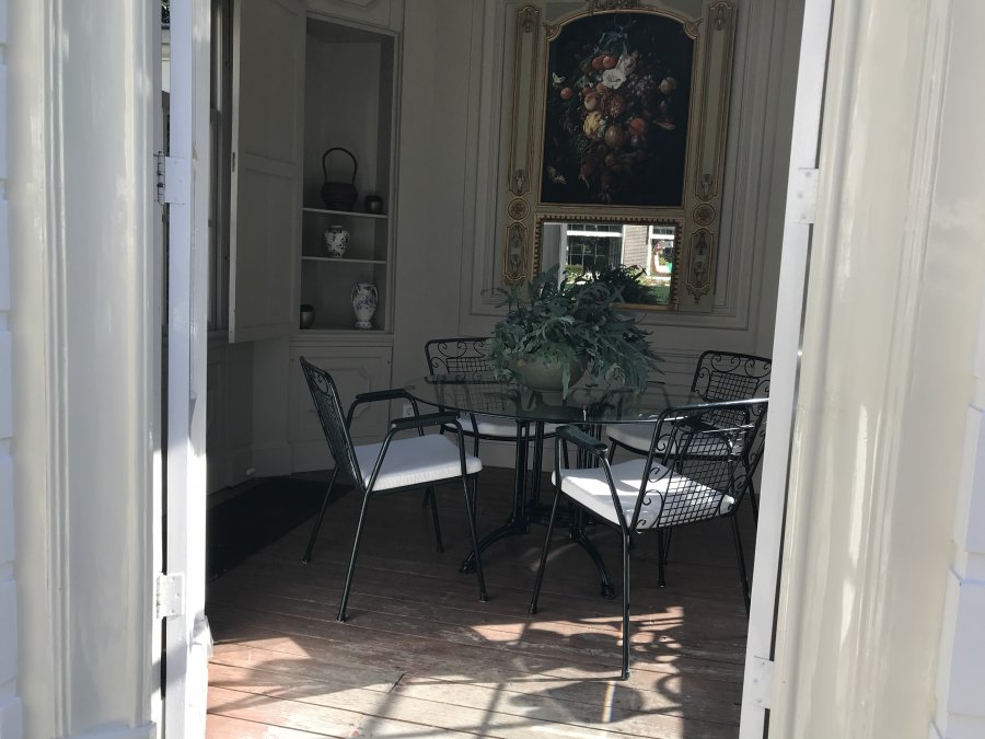 Dagen till ära, jag var ju ändå halvvägs till Flying Blue Platinum Ultimate nu med mina 900 UXP poäng, firade jag med ett glas champagne som jag fick beställa där inne och själv bära ut i trädgården. Det var bara jag och en person till i den stora trädgården, kändes ordentligt lyxigt att ha så mycket plats, lugn och ro för sig själv! För att undkomma solen en stund gick jag in i det lilla lusthuset som står ungefär i mitten av trädgården.