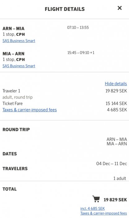 Ok, såg ut att kosta från 150k nu til EWR. Oavsett kommer jag kolla även detta prisformat vid bokningar framöver då vi kanske har en lite bättre förmån nu.