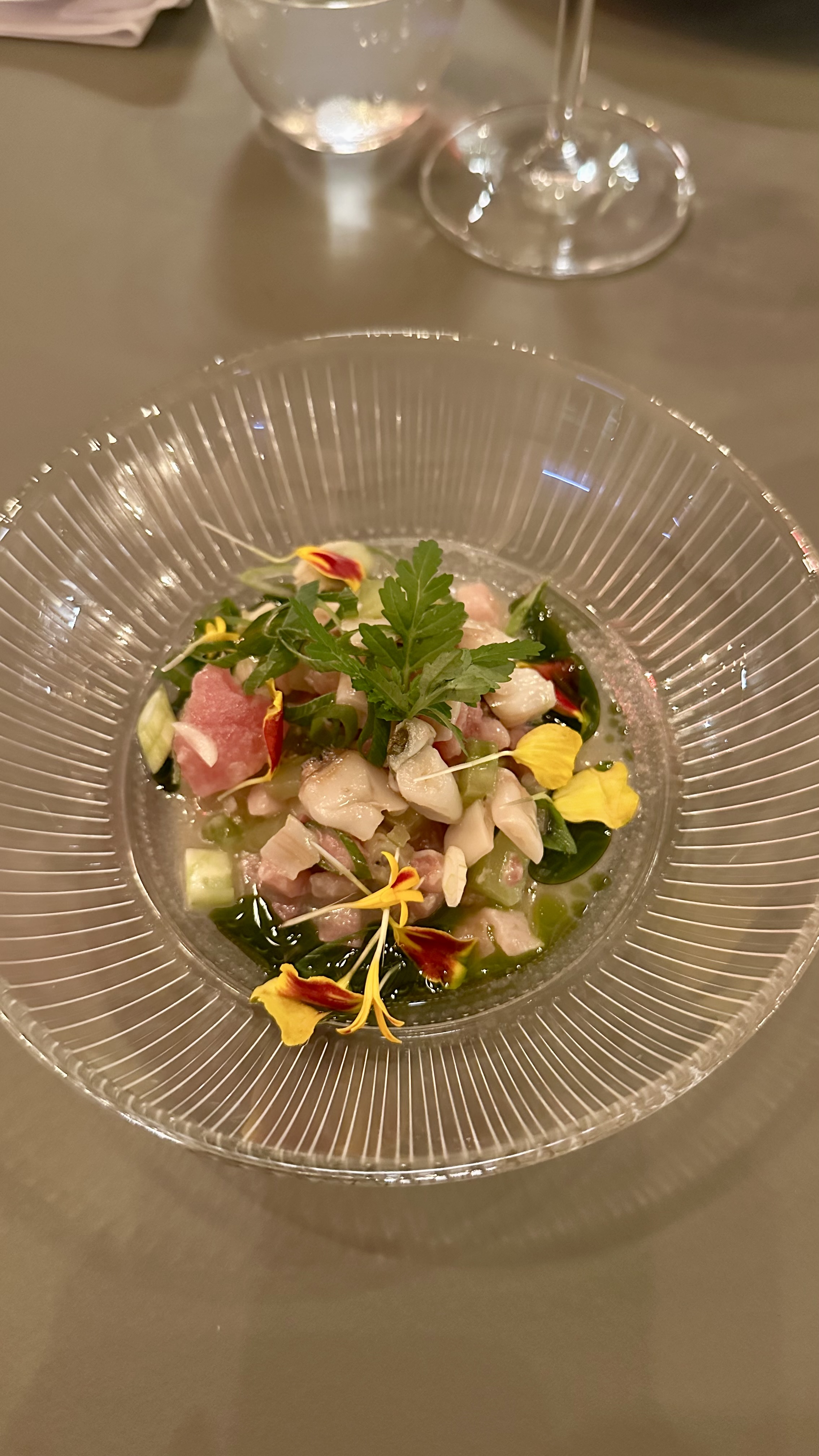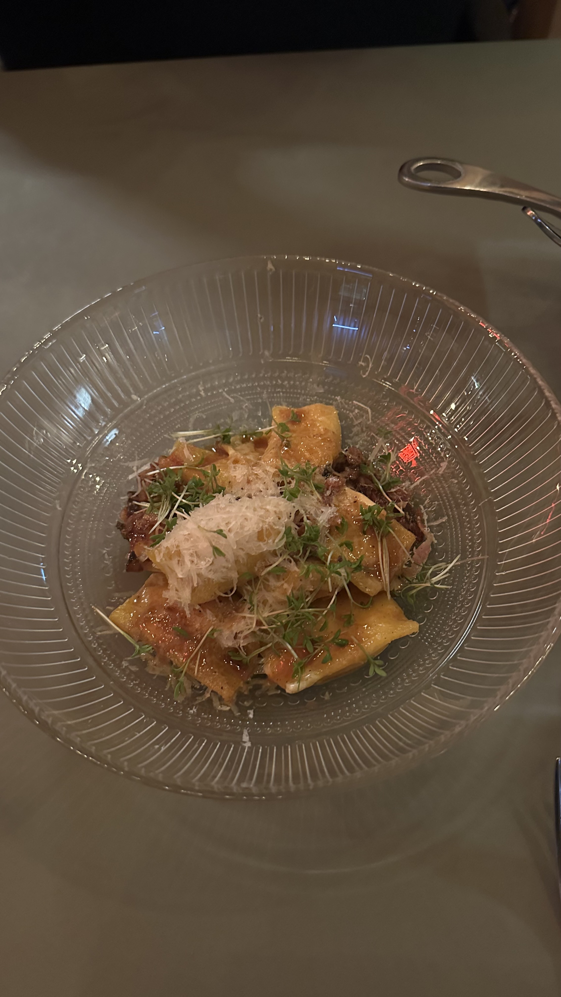 Förrättena var bra och med bra och rapp personal gick det enkelt att beställa. Vi landade på Pate En croute och Crudo - ett litet minus är att protionerna var väldigt olika i storlek så det kändes som att antigen var den ena väldigt långsam eller den andra glupsk, då man satt utan mat medans den andra åt klart.