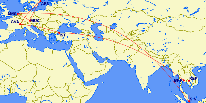 Destination: SIA (Tydligen helt plötsligt bytt kod enligt SQ iaf. Open Jaw, hem från BKK)