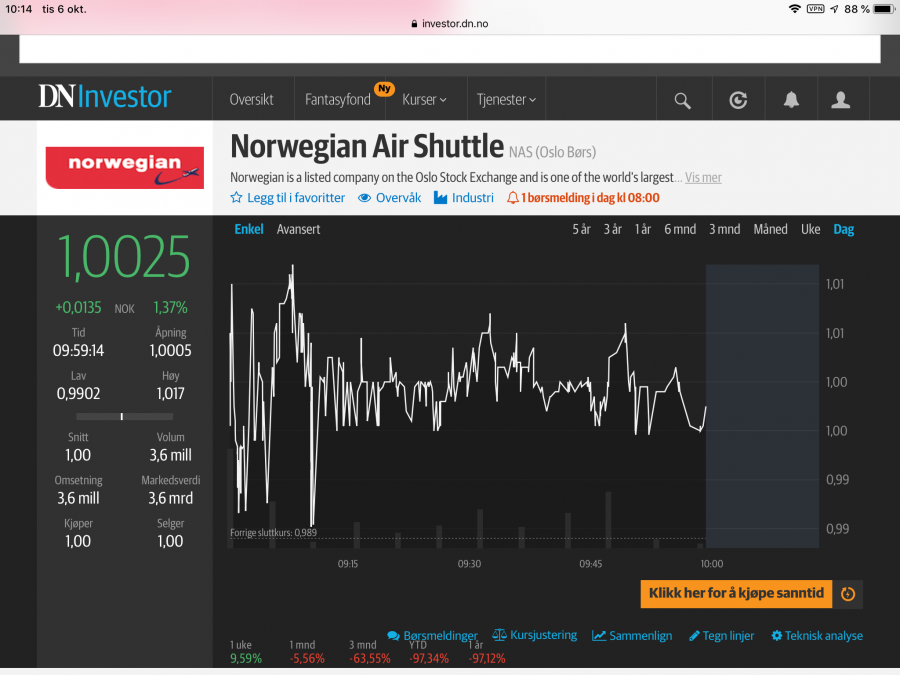 Diskussion om Norwegians aktiekurs