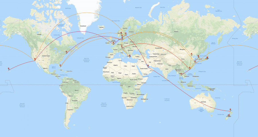 Visa antal miles, tid och stor karta på Great Circle Mapper