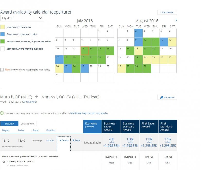Har för mig att de har tagit bort F till Kanada. Någon får rätta mig om jag har fel...Finns året om utan problem, i juni och juli i år har de dock strösslat med platser. Har lufthansa kvar F till Kanada?