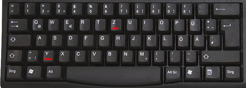 På tyskt tangentbord är Y och Z ombytta. Även @ ligger på ett annat ställe.
