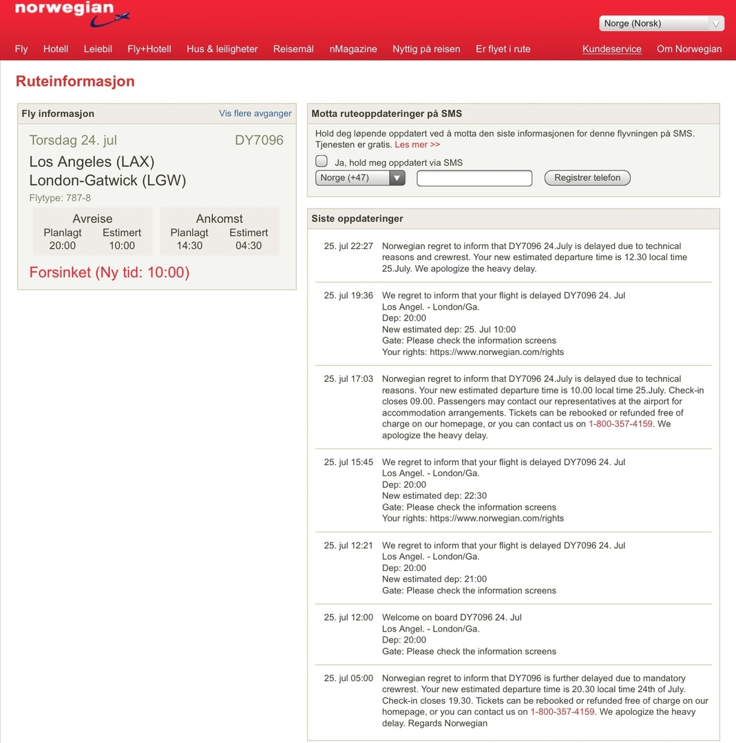 Tyvärr medger Norwegian ej ansvar, de ger pengar som goodwill. Som vanligt slänger de dit ett litet köttben och hoppas att passageraren ska nöja sig med det. De hävdar att de följer riktlinjerna för tolkning av vad som är extraordinära händelser, men de riktlinjerna säger också att man i varje fall mpste göra individuella prövningar av varje fall, vilket de inte verkar ha gjort.
