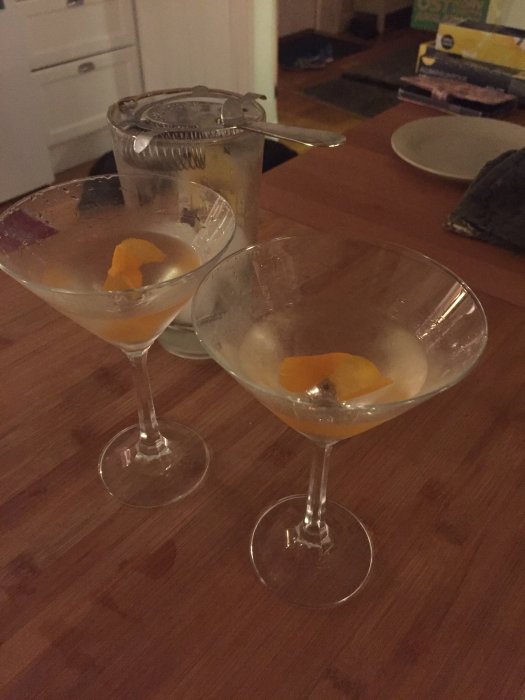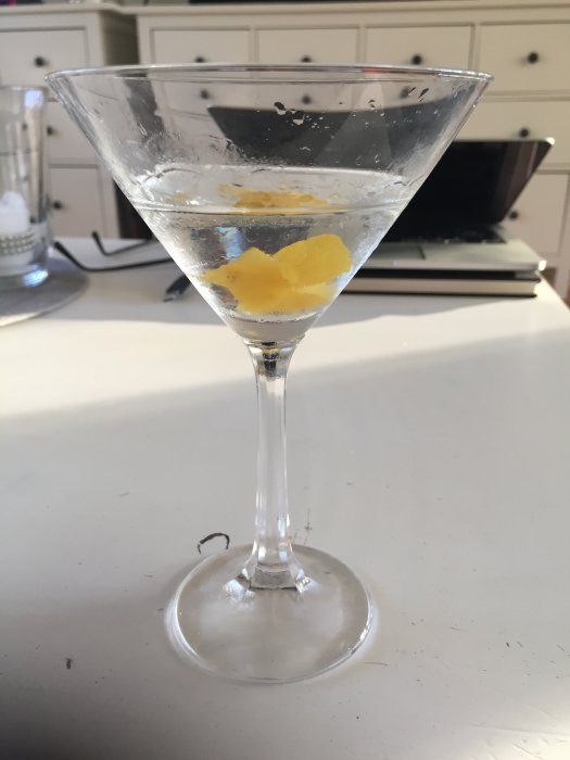 Frysta glas. Fryst rörglas. Gör mycket då isbitar som späder kan minimeras. Ingen oliv som förstör.