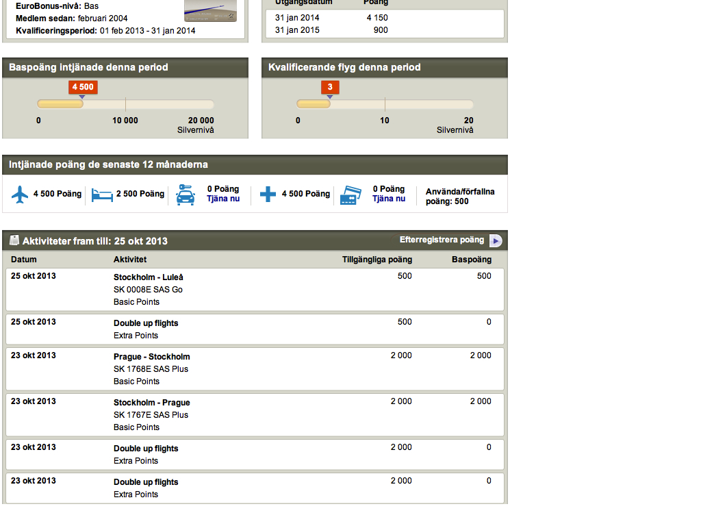 Jag har fått in samtliga dubbla poäng från Prag och redan dagen efter från LLA-flighten, men det verkar som om det enbart är extra poäng och inte baspoäng. Skulle det inte vara baspoäng?