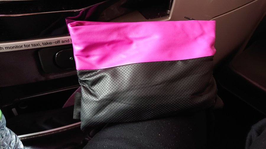 Amenitykit väntar på stolen (inspirerat av Mona Sahlins handväska?)