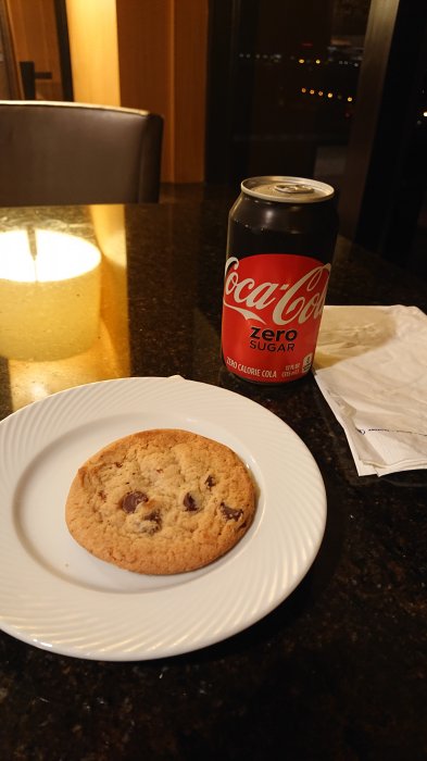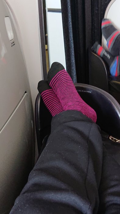 Framåt kvällen blev det en tupplur på några timmar. Sätet är av typen där man fäller fram ryggen för att få en plan yta. Crew bäddar sen med en tjock madrass och en tjock kudde ovanpå det. Sätet är ganska öppet, så man får finna sig i att det inte är helt privat, men det innebär också att det är helt öppet vid fötterna så man behöver aldrig känna sig instängd: