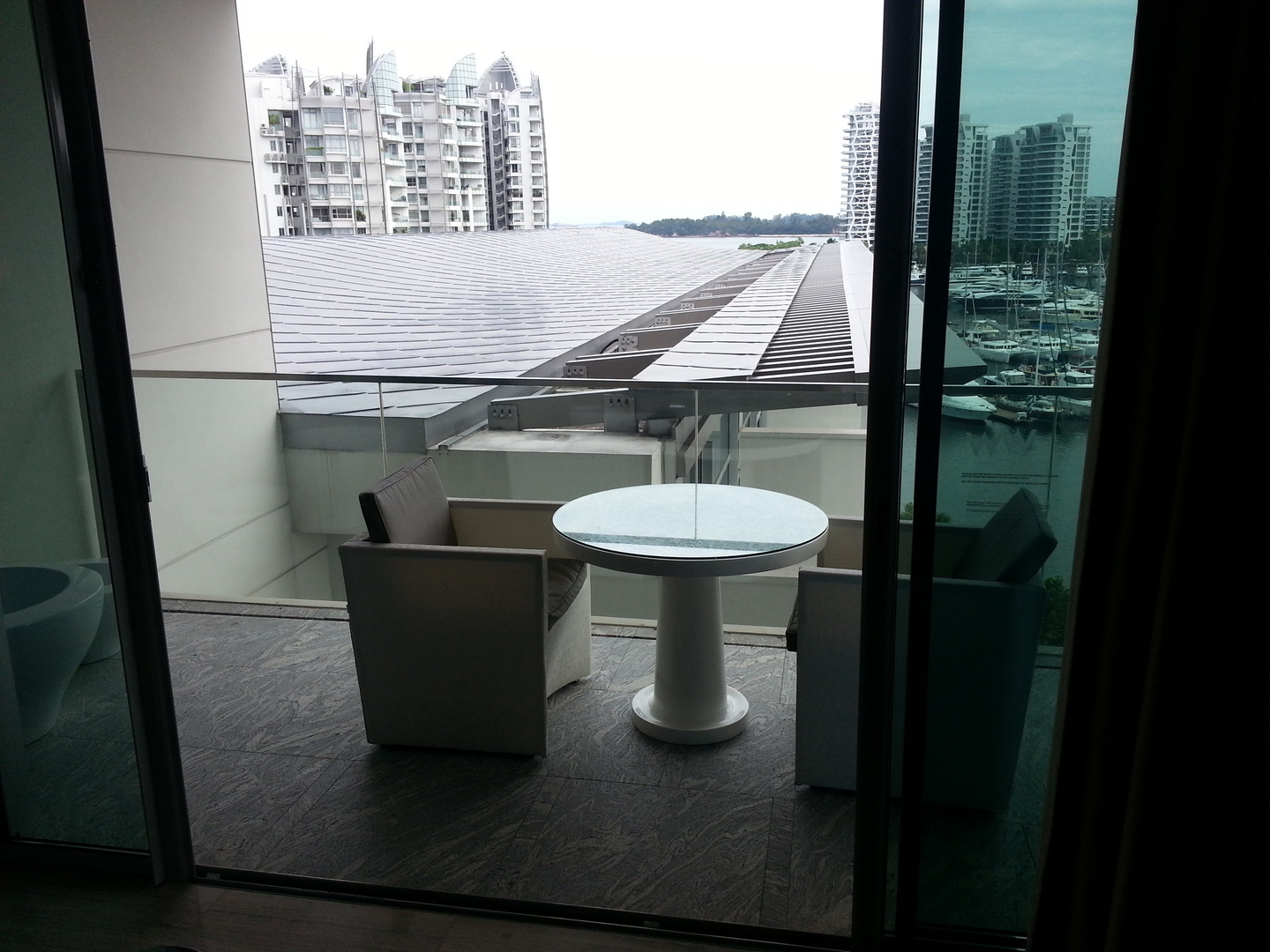 Efter att ha spanat in rummet och provat badkaret som står mitt i badrummet och som även det bjuder på utsikt över hamnen trillar vi ut på strandpromenaden och hittar en vinbutik där vi får tag på ett par flaskor champagne (15% rabatt om man köper två flaskor, 20% om man köper 6 osv. Gillar champagne-rabatt!) som vi avnjuter på vår balkong. Ws ”Whatever, whenever” service levererar snabbt ishinkar.