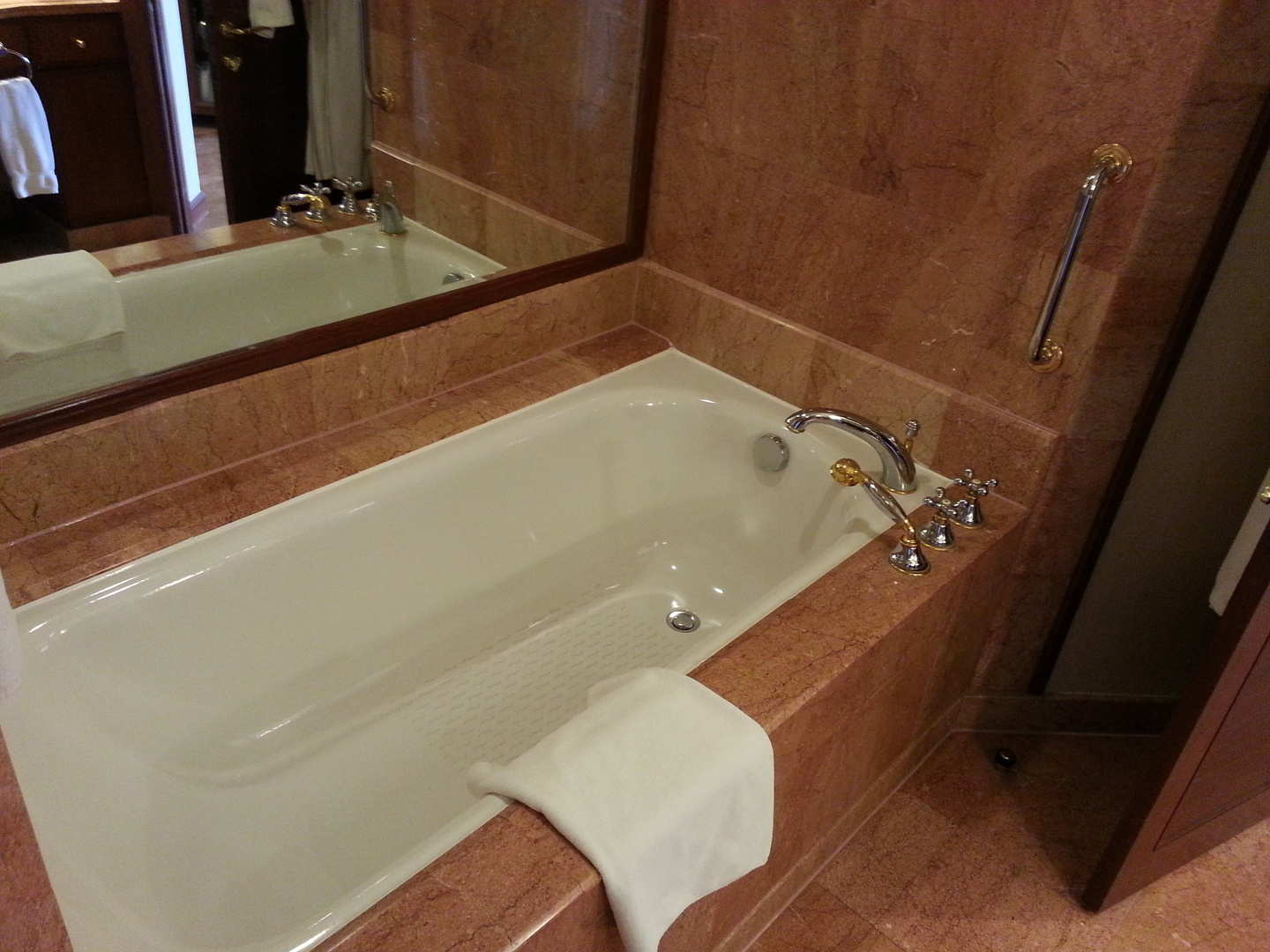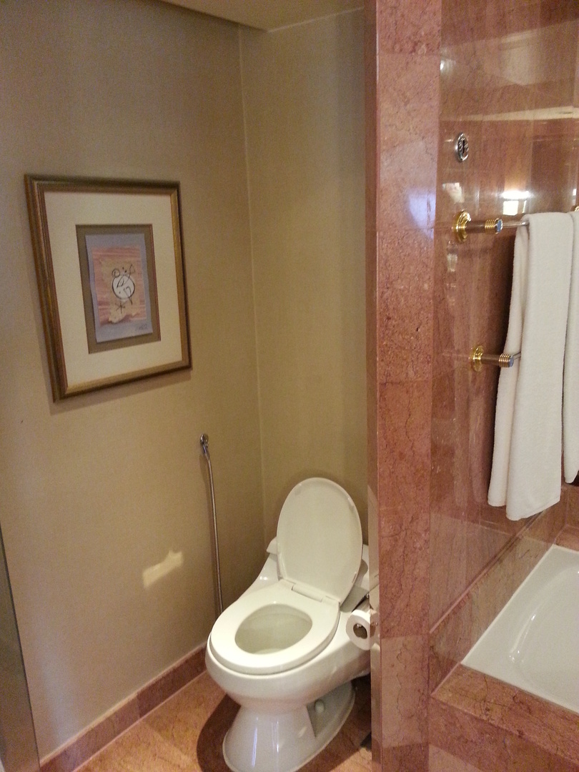 Incheckningen tar ganska lång tid och vi får återigen en svit som består av ett vardagsrum och ett sovrum samt ett badrum där man i badkaret kan spana ut över staden, men inte med utsikt över Petronas towers utan Marriotts jätteskylt. Tog dessvärre inte mer än ett par bilder på rummet.