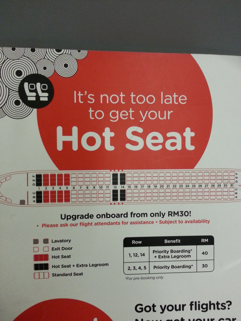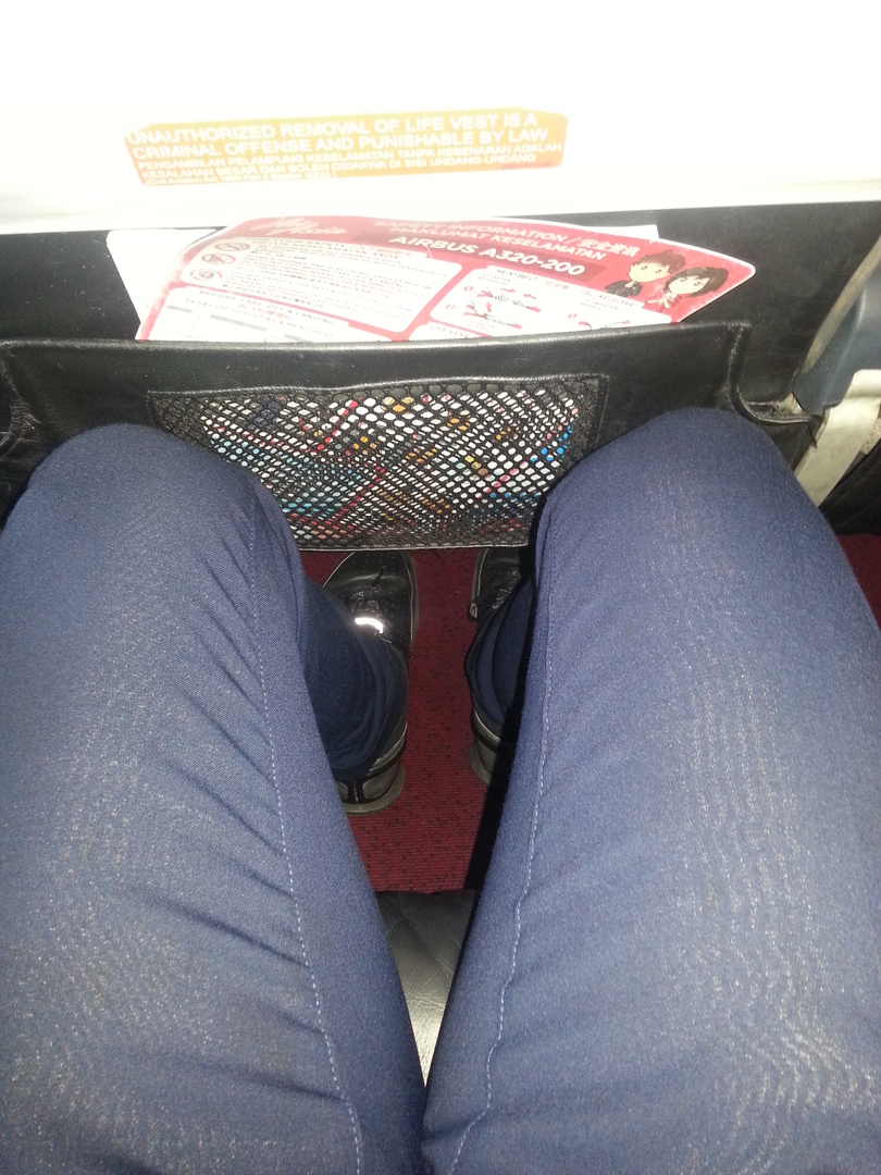 AirAsias plan, en Airbus A320 är nästan helt nytt och vi köper oss varsin cup of noodles för 6 MYR efter take off.