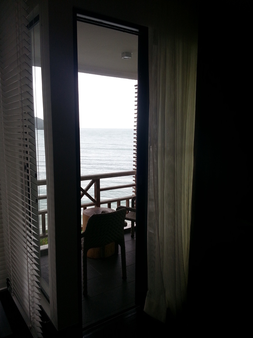 Rummet är tämligen litet men med en trevlig balkong med perfekt utsikt över havet och solnedgången. Vi kommer att trivas bra här.