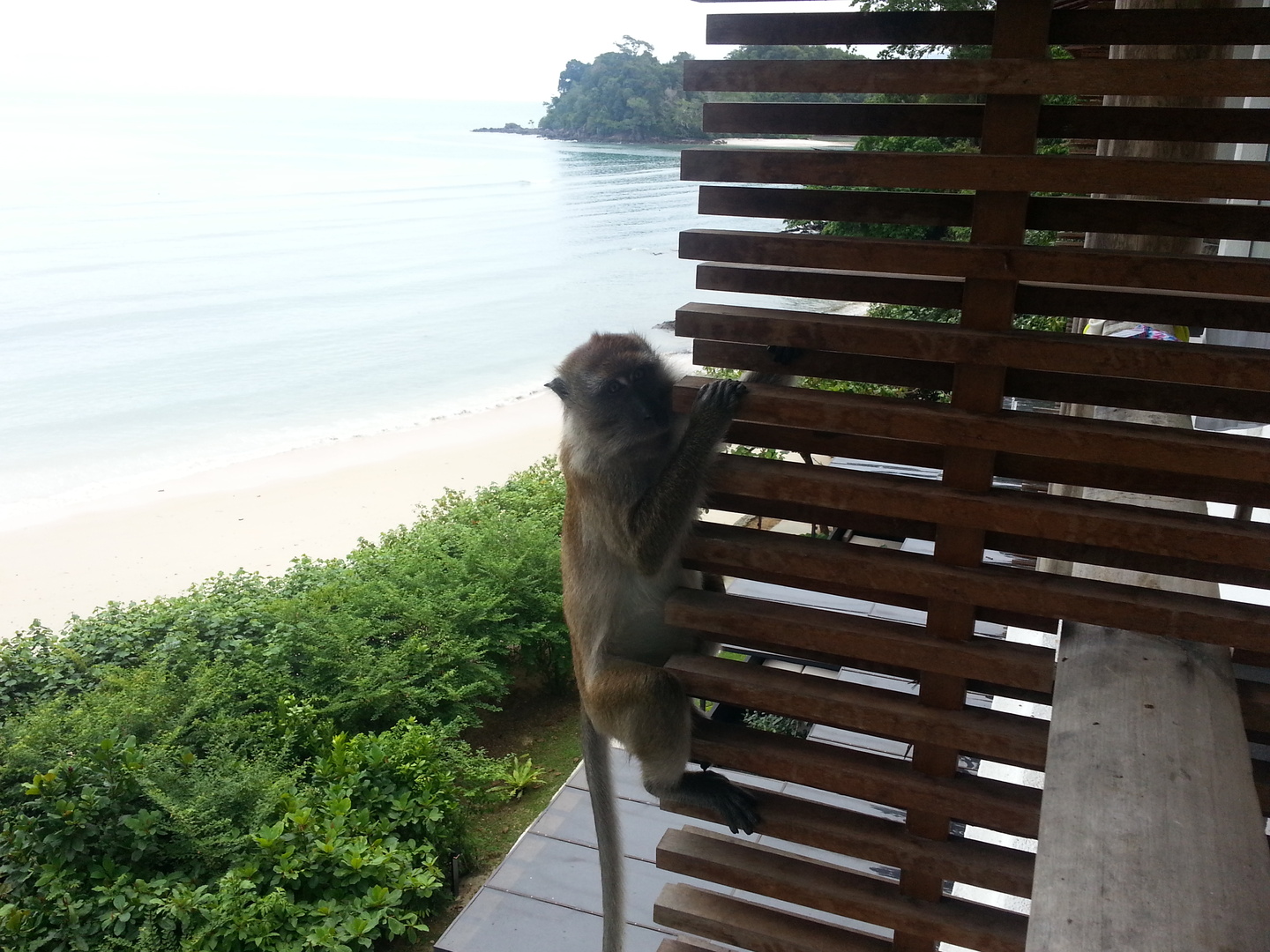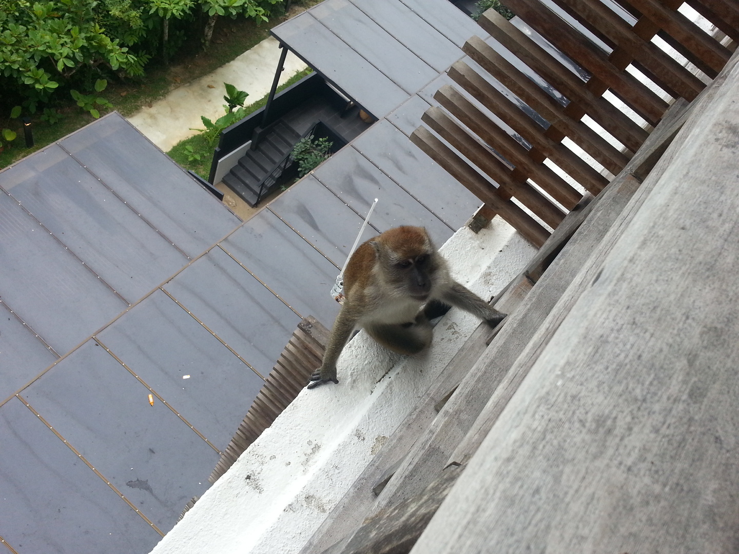 Balkongdörren skvallrar om att aporna på ön är hungriga rackare och att man skall vara noggrann med att låsa dörren ordentligt för att förhindra inbrott.